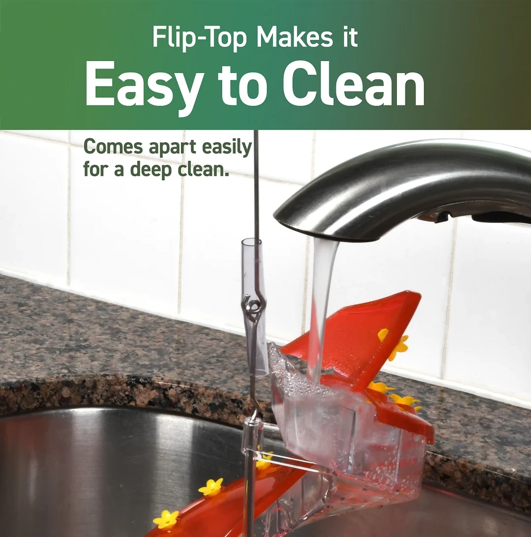 You can even fill the feeders when they are hanging. And watching nectar and seed cascade is educational as you and your kids fill your feeders. Cleaning is also a breeze through the innovative Flip-top.